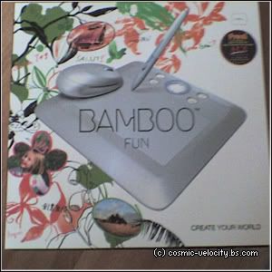 Anyway, I bought this silver WACOM Bamboo Fun tablet (Small: size A5) and it's really cute! We went to Funan last Sunday to find it. But when we reached there, all the shops were like "wtf we have no PC tablets harr, why don'cha try lookin' at someplace else?" so we went from shop to shop but found none.